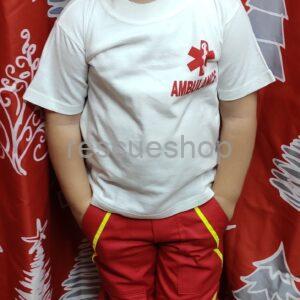 Környakas póló 100% pamutból, fehér színű, hosszú ujjú,feliratozása piros konstantin mentős kereszt alatta MENTŐK, hátán piros MENTŐK felirat.